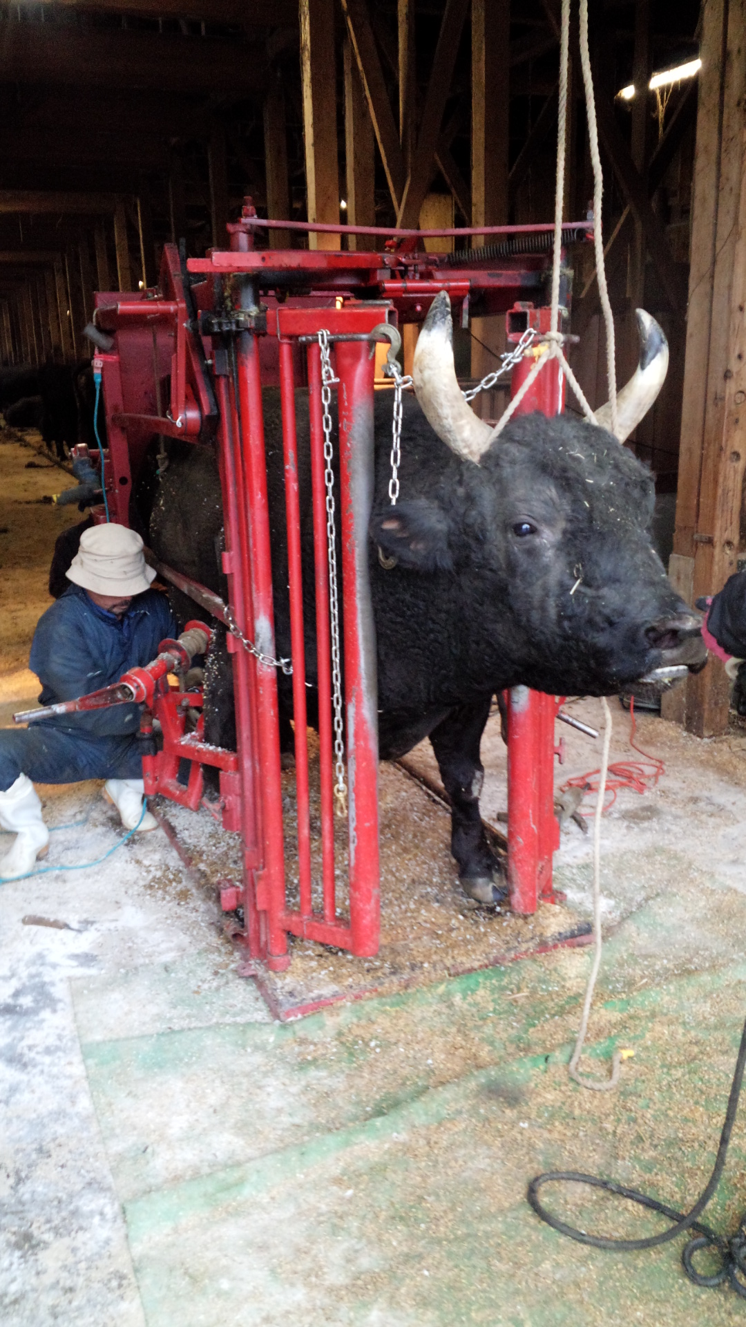 来年に向けて! ツイート 今年の牛の角突きは全日程を終了しましたが、来年に向けての準備はもう始まっています。共同牛舎の牛たちの爪切りが行われ、来年に向けて元気に冬を越すために、体調を整えていきます。 牛を鋼鉄製の枠に入れて、爪を切ります。 爪の状態もチェックします。悪い箇所があれば、治療も行います。 山古志はまもなく、真っ白になります。皆さんも冬を元気に乗り切るために、体調を整えましょう。